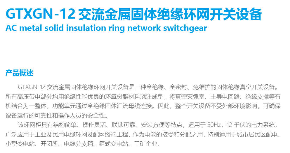 GTXGN-12交流金屬固體絕緣環(huán)網開關設備